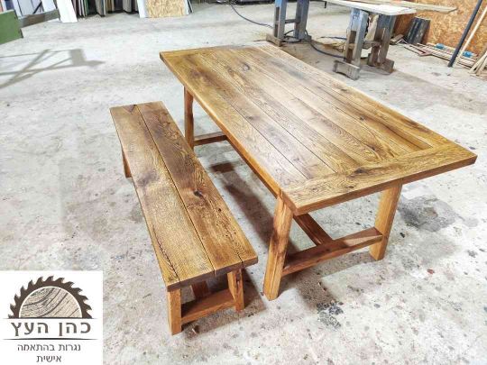 שולחן אוכל כפרי מעץ אלון מבוקע